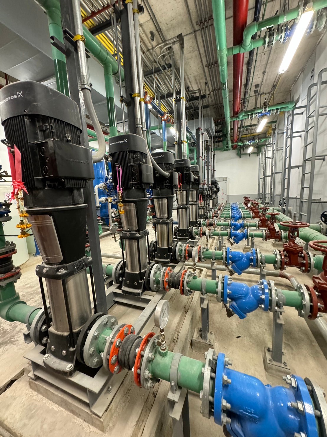 ปั๊มน้ำกรุนด์ฟอส GRUNDFOS, LEO PUMP, KAWAMOTO, EBARA, STAC, MITSUBISHI, PACO, SHINMAYWA, TSURUMI, CALPEDA, MASDAF, CNP, BESTANK, ครอบคลุมทุกลักษณะการใช้งาน อาทิเช่น ปั๊มน้ำระบบสุขาภิบาล (Water supply and booster pump) ปั๊มน้ำระบบปรับอากาศ (Chilled water & condenser pump) ปั๊มสูบน้ำเสีย ปั๊มสูบน้ำท่วม ปั๊มน้ำชลประทาน (Submersible pump) ปั๊มสำหรับโรงงานอุตสาหกรรม (Industrial process pump & utility pump) และ ปั๊มดับเพลิง (Fire pump)"